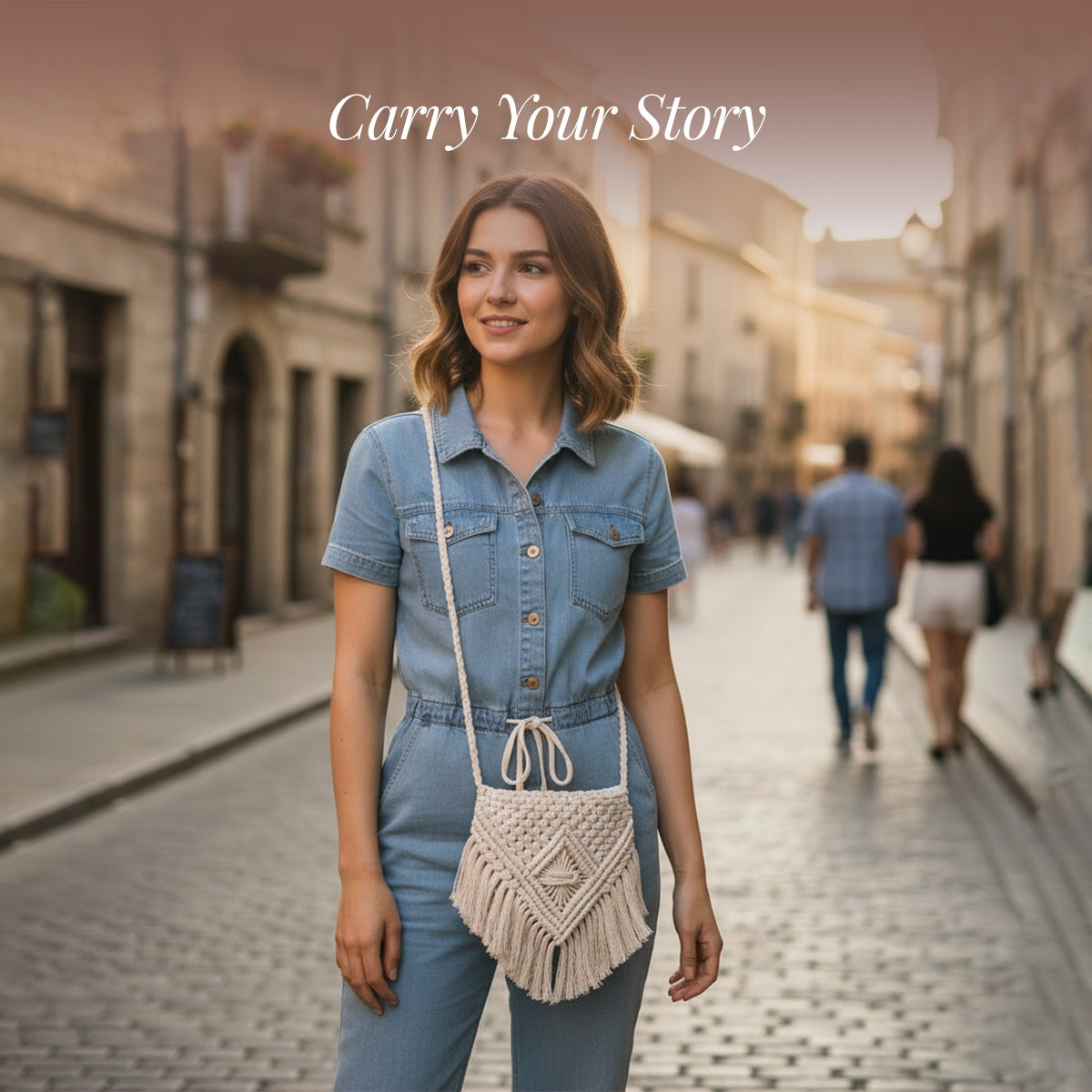 AVOIRR Handmade Macrame Crossbody Bag – Boho Crochet Purse for Women