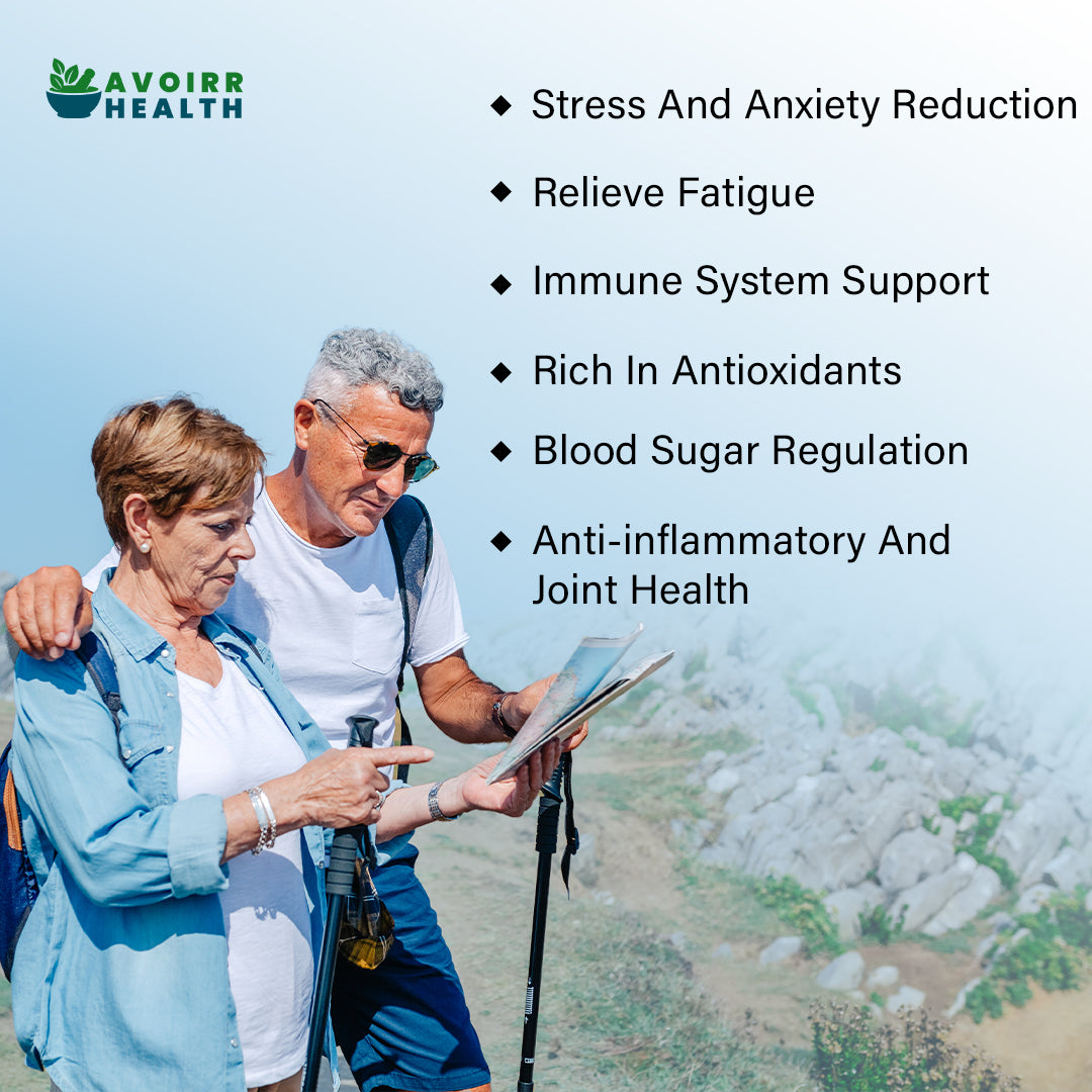 - Holistic Health Support: Enhance your well-being with adaptogenic herbs such as Ashwagandha and Yashtimadhu that help relieve stress and anxiety.